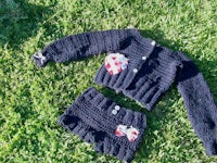 sizing: whole set small-medium. shorts 27 waist. cardigan size medium.