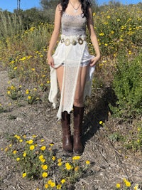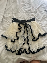 ruffled mesh midi skirt or bathing suit cover up. wrap style skirt with buttons.