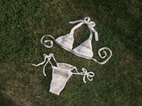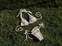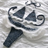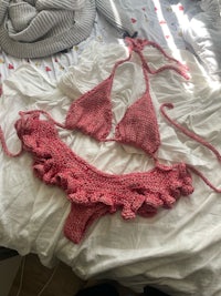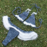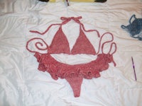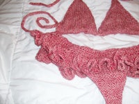 bikini style knit-kini fully knit be cautious when washing or wearing in water.
