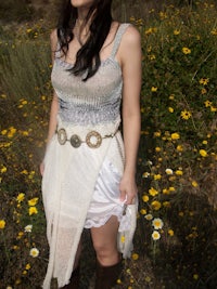 sizing : mini skirt waist (adjustable) 26β-30β. 10β length. top fits small-medium.