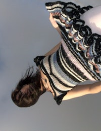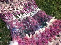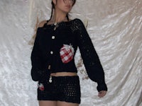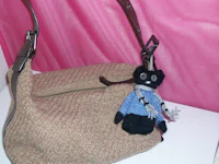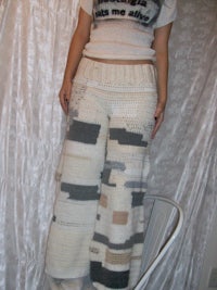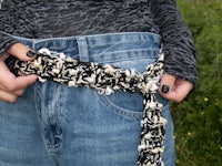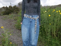 made with alpaca, acrylic yarn. stainless steel belt loop. adjustable sizing.
