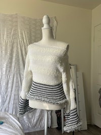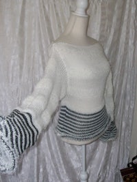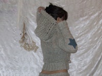 flared/oversized sleeved, very lightweight sweater. fuzzy and distressed style.