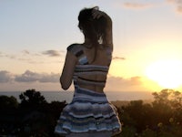 bikini style top with matching skirt. wear bottoms as babydoll top or skirt.