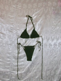 sizing: small-medium. top: B-C cup (adjustable tie) bottoms: (adjustable ties, thong style back.)