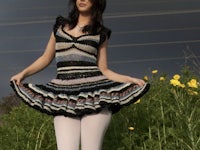 (loose threads not included) fold over waisted cotton tutu with secondhand alpaca fluffy bottom.