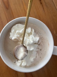 i’ll add enough whipped cream for the warm milk to spill over the sides.